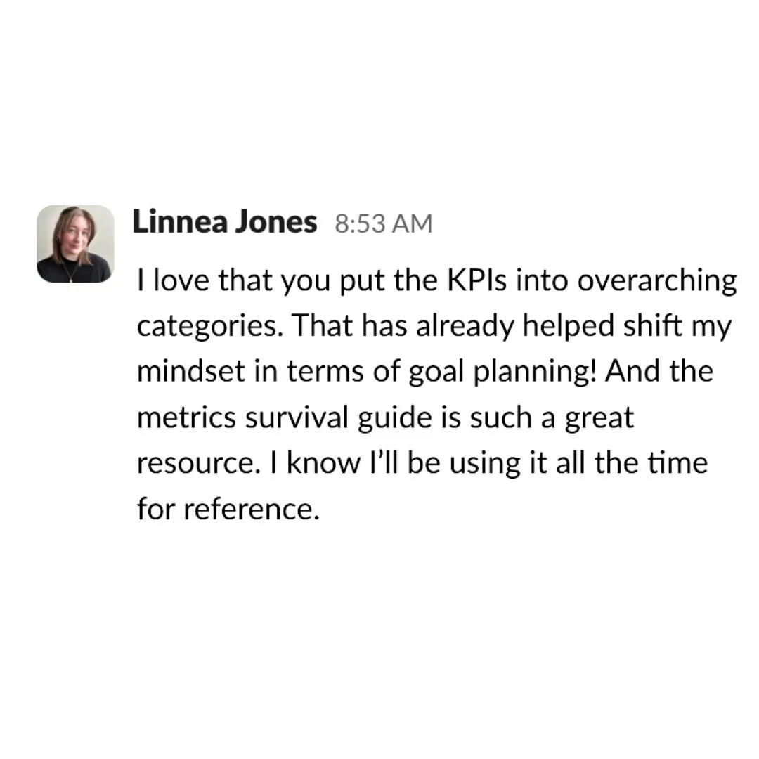 $300 value - My exclusive metrics cheat sheet reveals key takeaways on aligning KPIs to business goals and includes the top five analysis tools I swear by.